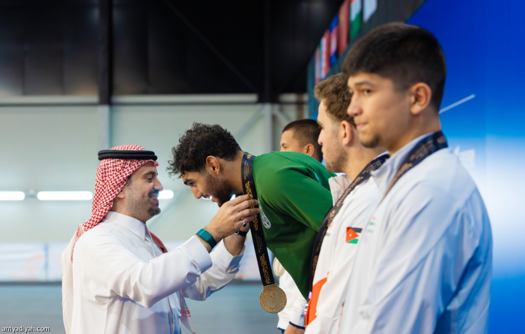 فهد بن جلوي يتوج عبد الإله مير عالم بعد حصوله على الميدالية الذهبية (المركز الإعلامي ـ فريق السعودية)
