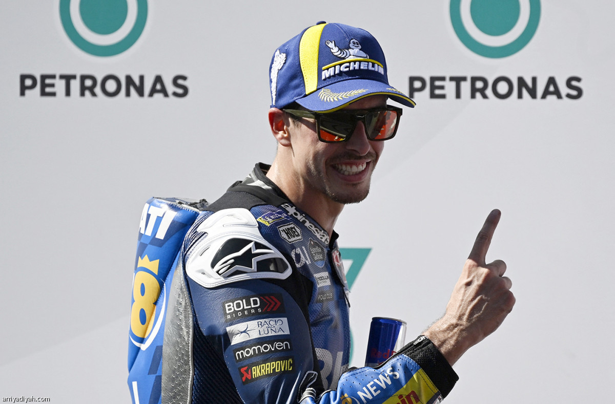 توّج الإسباني أليكس ماركيز، سائق فريق دوكاتي، الأحد، بلقب جائزة ماليزيا الكبرى، الجولة العشرين من بطولة العالم للدراجات النارية فئة «موتو جي بي»، المنظمة على حلبة «سيبانج» (رويترز)