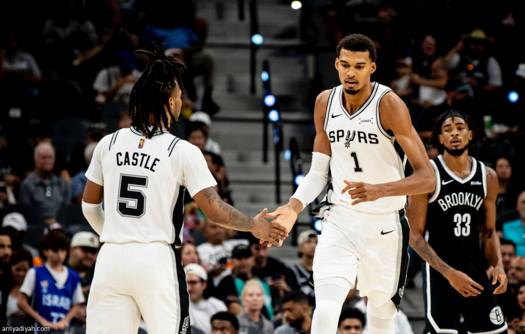 واصل فريق سان أنطونيو سبيرز الأمريكي الأول لكرة السلة، انطلاقته القوية، بعدما تغلب على ضيفه بروكلين نتس بنتجة 118-107، الإثنين، بمجهود الفرنسي فيكتور ويمبانياما، وذلك ضمن منافسات دوري «NBA» للمحترفين، في مباراة كرَّم قبل بدئها جريج بوبوفيتش، مدربه المخضرم.