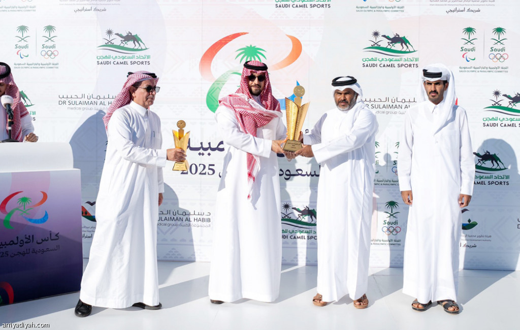 توج الأمير عبد الله بن فهد بن عبد الله، عضو مجلس إدارة اللجنة الأولمبية والبارالمبية السعودية، نيابةً عن الأمير عبد العزيز بن تركي الفيصل، وزير الرياضة رئيس اللجنة الأولمبية والبارالمبية السعودية، الملاك الفائزين بكؤوس الأولمبية السعودية للهجن لفئة «حيل وزمول»، الفئة الخامسة والأخيرة المعتمد مشاركتها في البطولة.
