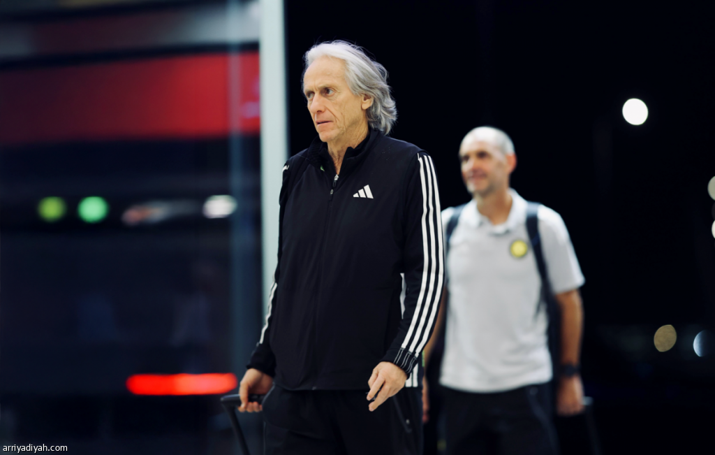 البرتغالي جورجي جيسوس مدرب فريق النصر الأول لكرة القدم لحظة وصوله مع اللاعبين مدينة تبوك (المركز الإعلامي ـ النصر)