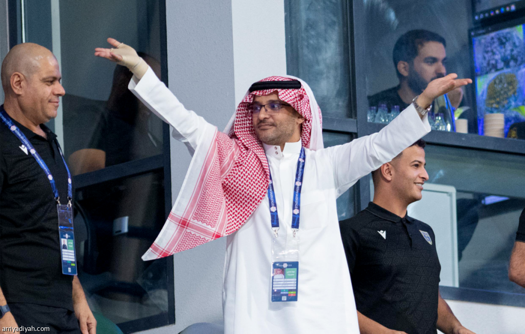 بدر الغنام رئيس نادي التعاون خلال مواجهة الفريق الأول لكرة القدم أمام الفتح ضمن مباريات الجولة السابعة من دوري روشن السعودي (المركز الإعلامي ـ نادي التعاون)