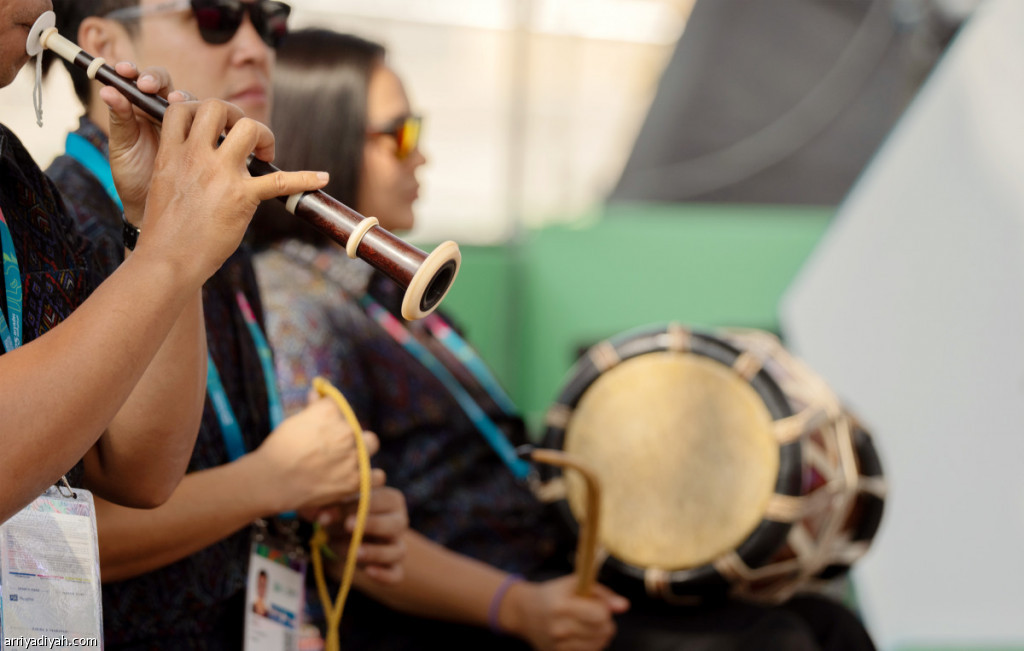 أحد عازفي الموسيقى التايلاندية خلال منافسات الأدوار الإقصائية، الخميس (المركز الإعلامي ـ اللجنة المنظمة)