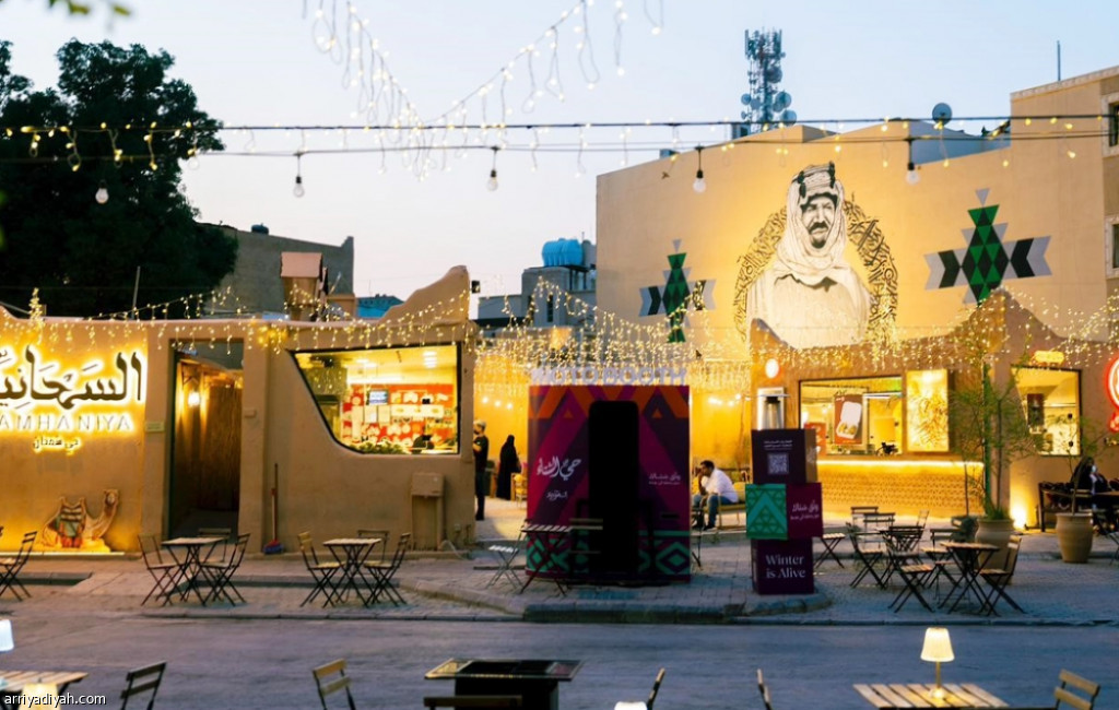 واجهة منطقة المطاعم والجلوس على إحدى المقاهي العامة داخل الحي العريق، الجمعة (المركز الإعلامي ـ الدرعية)