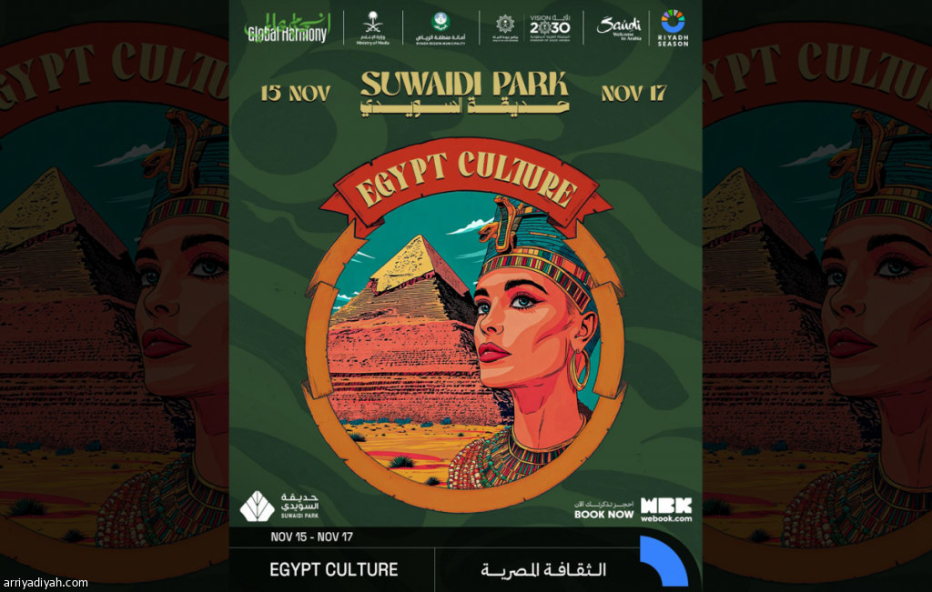 وتأتي فعالية «أيام الثقافة المصرية»، التي تستمر ثلاثة أيام، ضمن سلسلة فعاليات تستضيفها حديقة السويدي وتعرض 14 ثقافة عالمية، بهدف تعزيز التبادل الثقافي وإثراء المشهد المجتمعي بما ينسجم مع مستهدفات رؤية السعودية 2030
