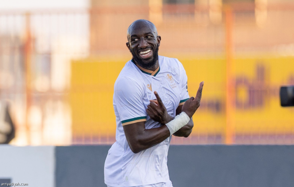 المالي موسى ماريجا مهاجم فريق الدرعية يحتفل بعد تسجيله الهدف الثاني في شباك العربي، الجمعة (المركز الإعلامي - دوري يلو)