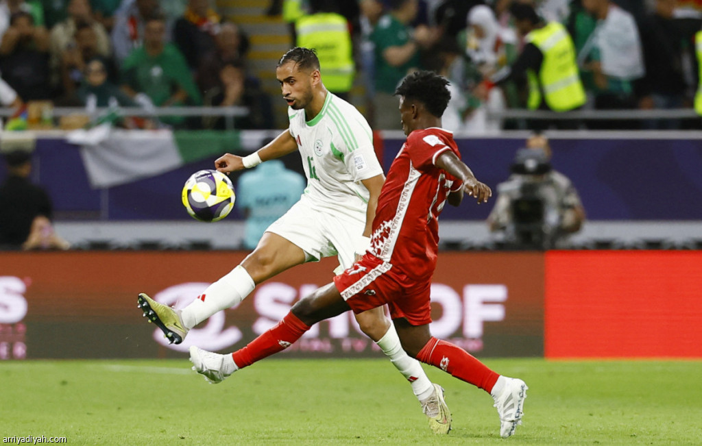 لاعب المنتخب الجزائري محمد رضا والسوداني عبد الصمد منين يتنافسان على الكرة خلال لقاء المنتخبين، الأربعاء (رويترز)