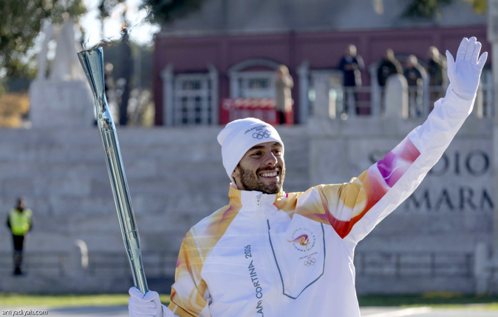 حمل الإيطالي جريجوريو بالترينيري، بطل السباحة الأولمبي، السبت، شعلة دورة الألعاب الشتوية ميلانوـ كورتينا في إيطاليا، قبل شهرين على حفل الافتتاح المقرر 6 فبراير المقبل.