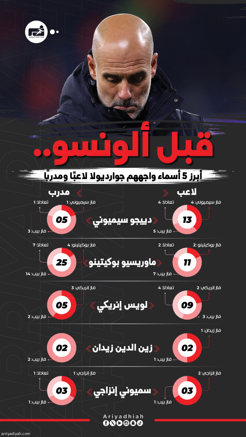 قبل ألونسو.. من هم أبرز 5 أسماء واجههم جوارديولا لاعبا ومدربا؟