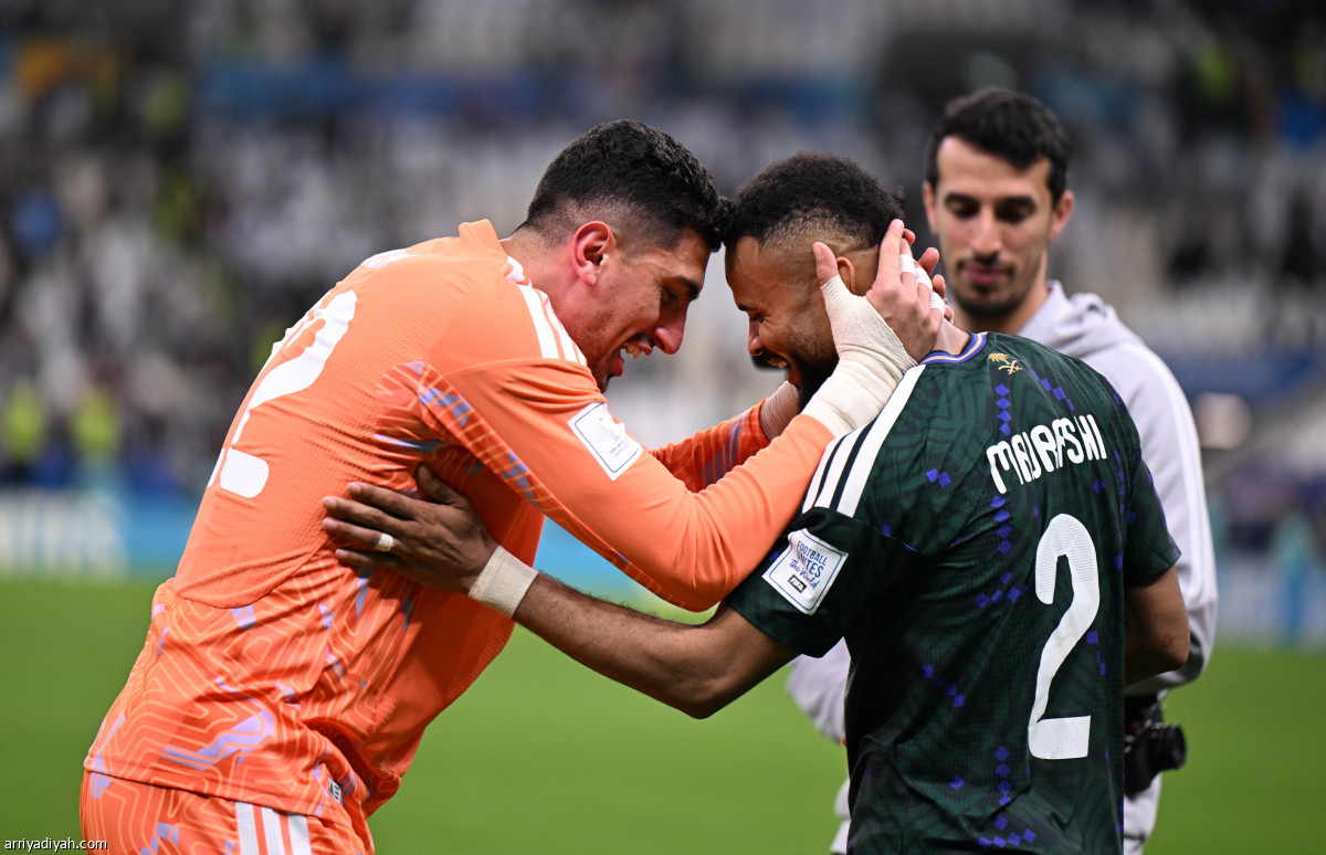 تأهل المنتخب السعودي الأول لكرة القدم إلى نصف نهائي كأس العرب ـ «فيفا» 2025 في قطر، بعد فوزه، الخميس، على نظيره الفلسطيني 2ـ1 ضمن دور الثمانية.. وأحرز فراس البريكان ومحمد كنو هدفي «الأخضر» على ملعب «لوسيل».. وبعد صافرة النهاية، احتفل اللاعبون مع الجمهور بالانتصار والعبور إلى دور الأربعة. تصوير: سعد العنزي وبشير صالح ومحمد المانع