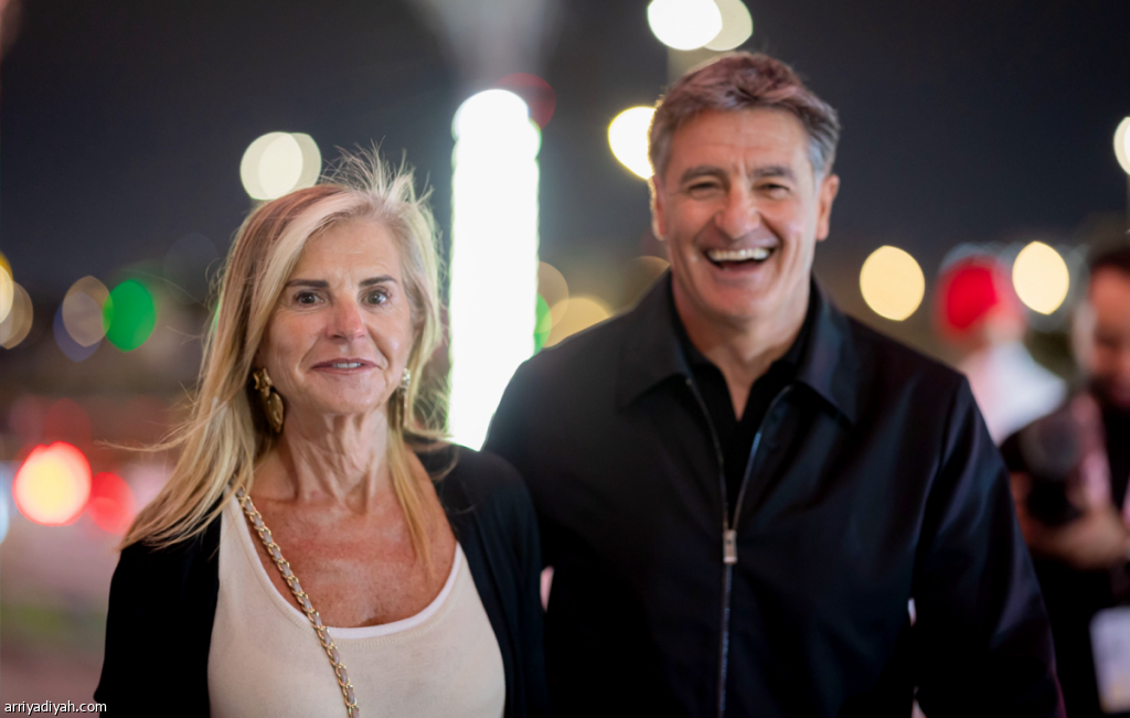 الإسباني ميشيل جونزاليس، مدرب فريق القادسية الأول لكرة القدم، خلال حضوره برفقة زوجته حفل موسم الخبر «الخَبر في الخُبر» مساء السبت (المركز الإعلامي ـ القادسية)