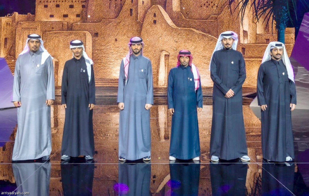 مجموعة من الشعراء المتسابقين في برنامج «شاعر الراية» على المسرح (أرشيفية)