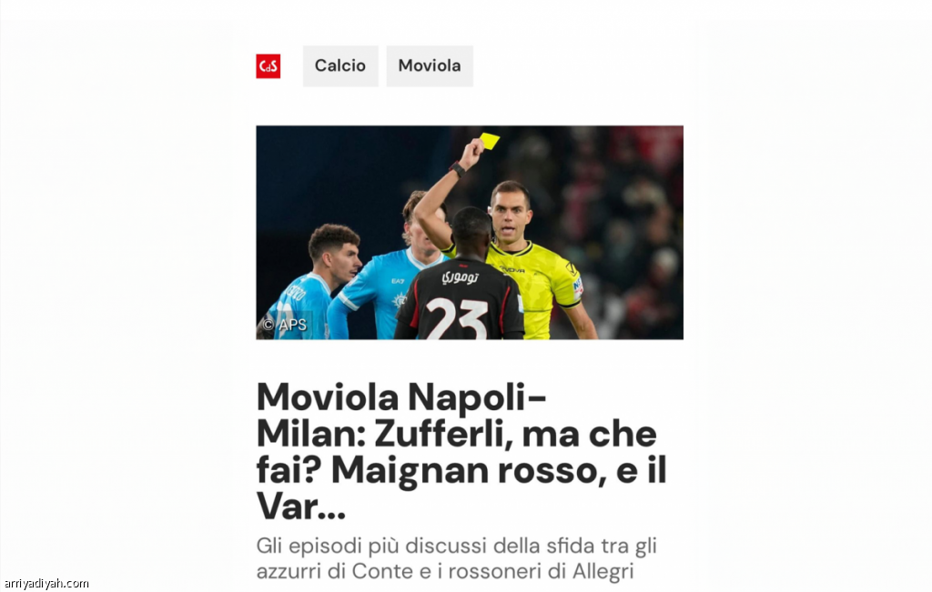كما علقت الصحيفة على عدم مصافحة ماسيميليانو أليجري، مدرب ميلان، لنظيره أنطونيو كونتي، مدرب نابولي، بعد نهاية المباراة، حيث غادر أليجري الملعب مباشرة عقب صافرة الحكم التي أعلنت خسارة فريقه في نصف النهائي.