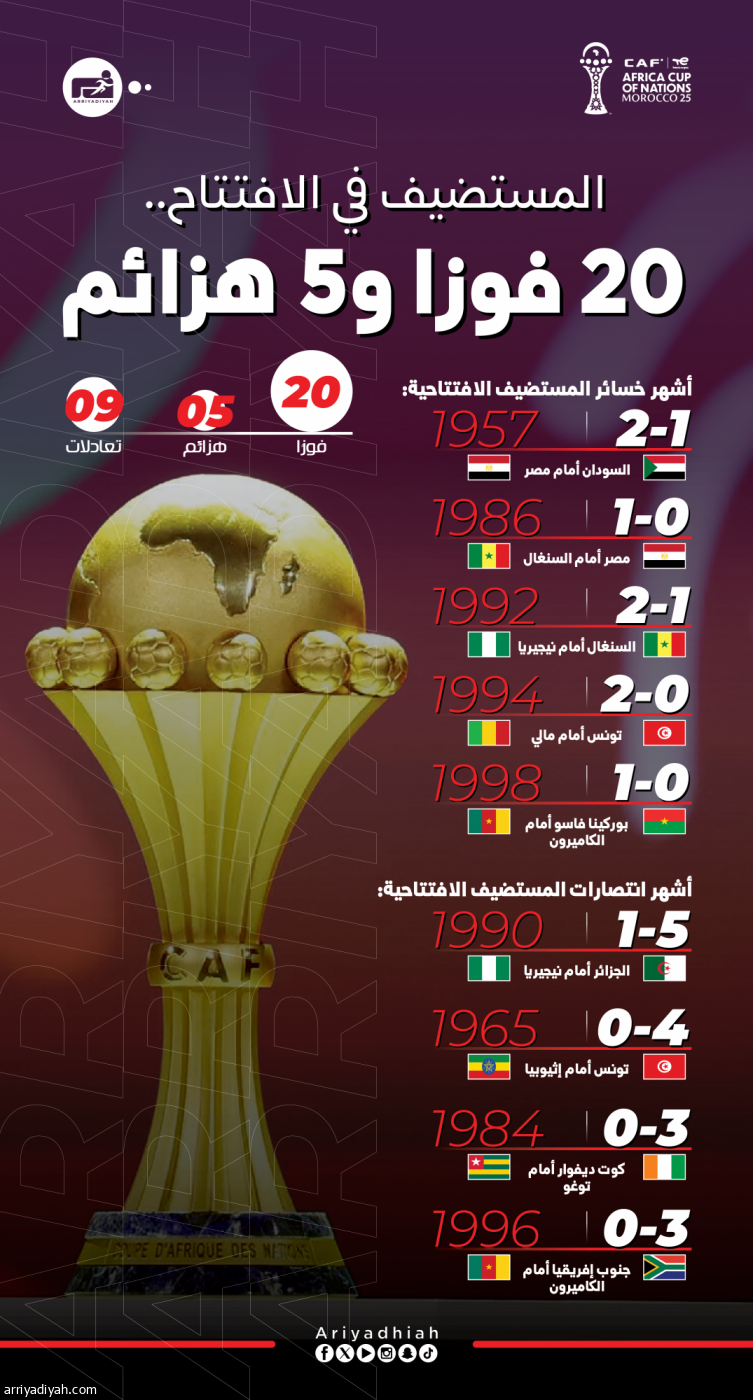 المستضيف في الافتتاح.. 20 فوزا و5 هزائم