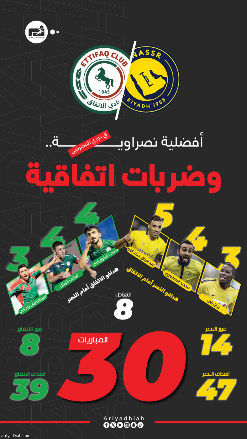 النصر والاتفاق.. الأكبر ثلاثية والأخيرة شرقاوية