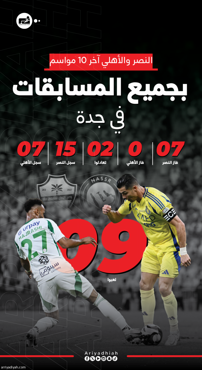 النصر والأهلي آخر 10 مواسم بجميع المسابقات في جدة
