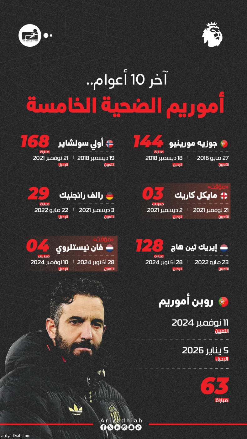 آخر 10 أعوام.. أموريم الضحية الخامسة