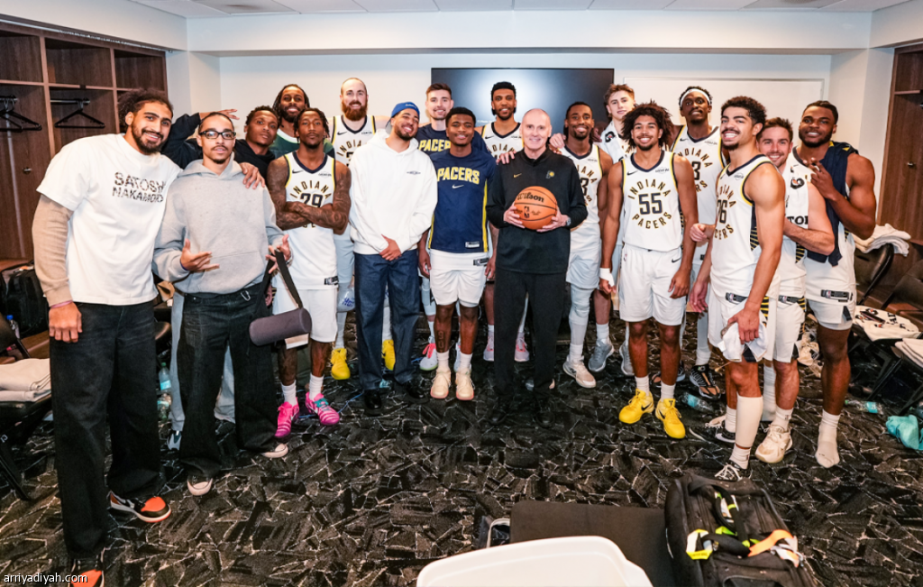 ريك كارلايل، مدرب فريق إنديانا بايسرز لكرة السلة، يحتفل برقمه التاريخي مع لاعبيه عقب مباراتهم أمام شارلوت هورنتس (المركز الإعلامي ـ إنديانا بايسرز )