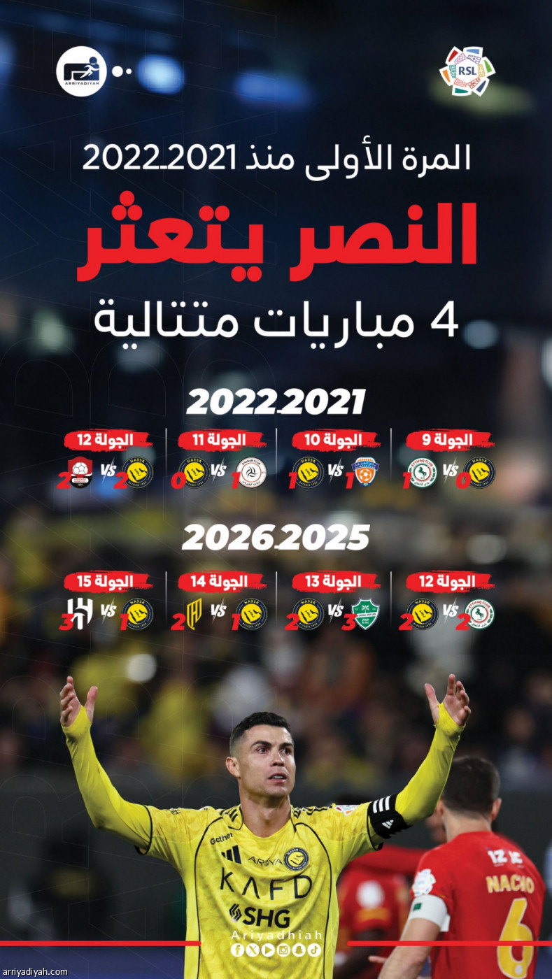 النصر يتعثر في 4 مباريات متتالية