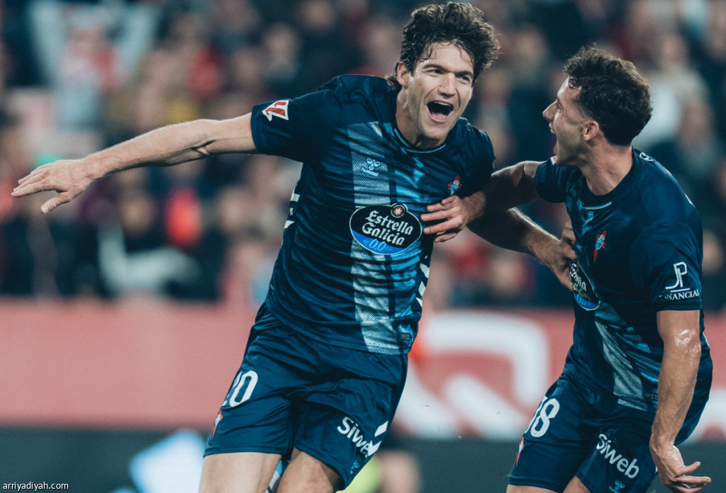 ماركوس ألونسو، يسارًا، يحتفل بهدف الفوز لسيلتا فيجو في شباك إشبيلية الإثنين (المركز الإعلامي ـ سيلتا فيجو)
