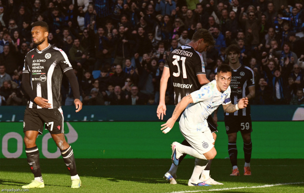 عزَّز فريق إنتر ميلان الإيطالي الأول لكرة القدم صدارته لجدول ترتيب الدوري بفوزه على مضيفه أودينيزي بهدف دون رد، السبت، لحساب الجولة الـ 21.