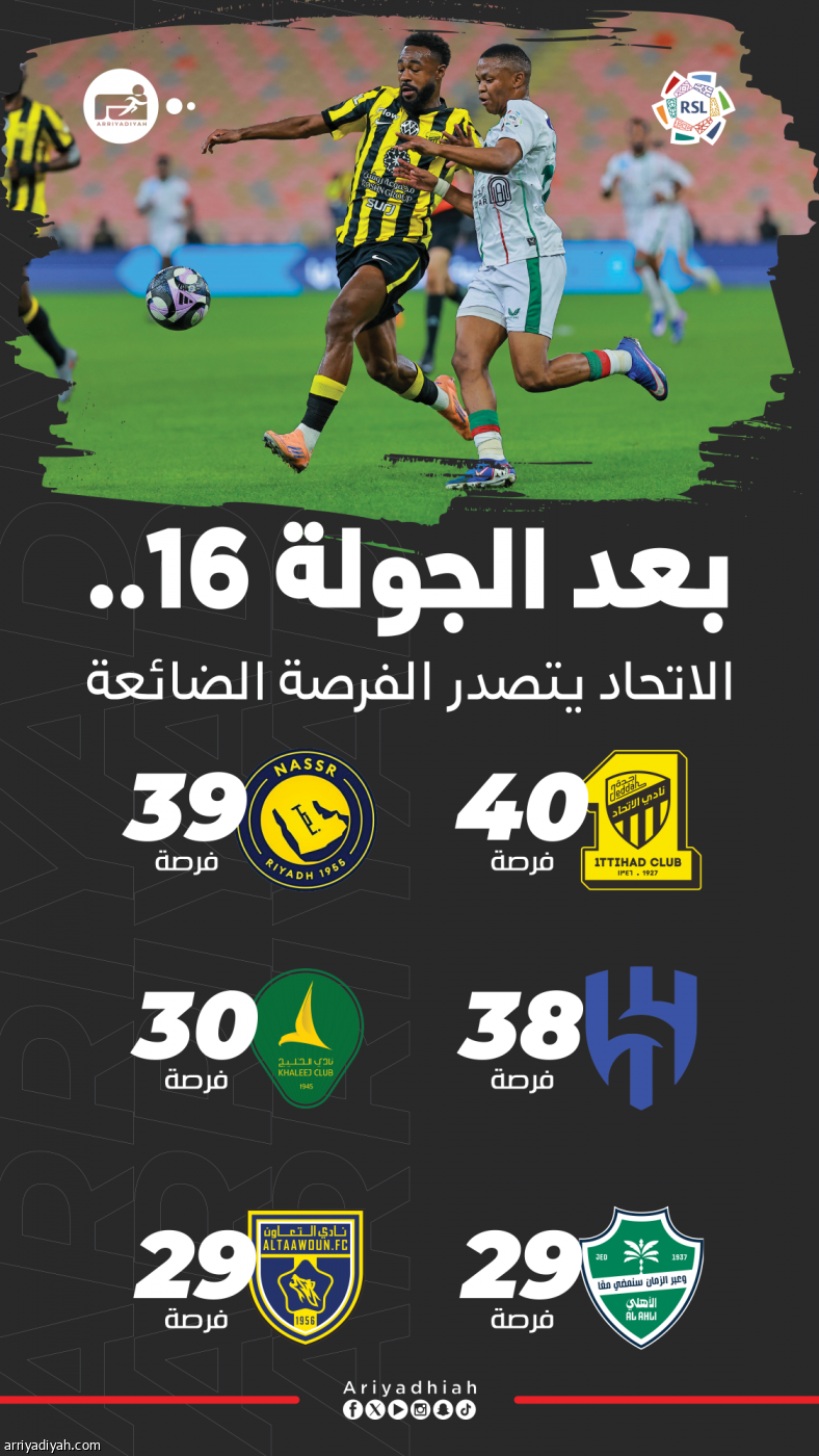 بعد الجولة الـ16.. #الاتحاد يتصدر الفرصة الضائعة