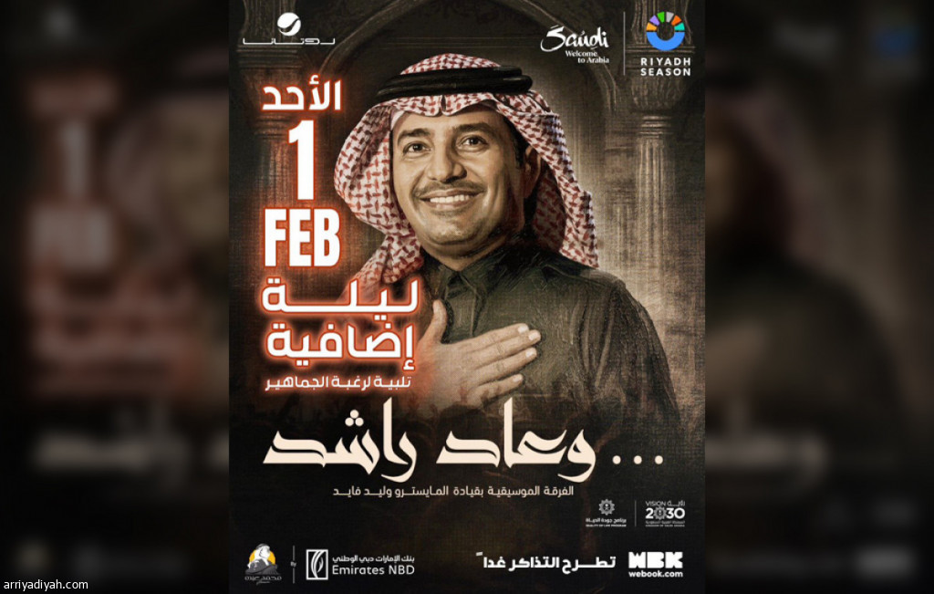أعلنت شركة روتانا للموسيقى امتداد حفلات «وعاد راشد» إلى ليلتين، بعد الإقبال الكبير على الحفلة الأساسية للفنان راشد الماجد، ضمن فعاليات موسم الرياض 2026.
