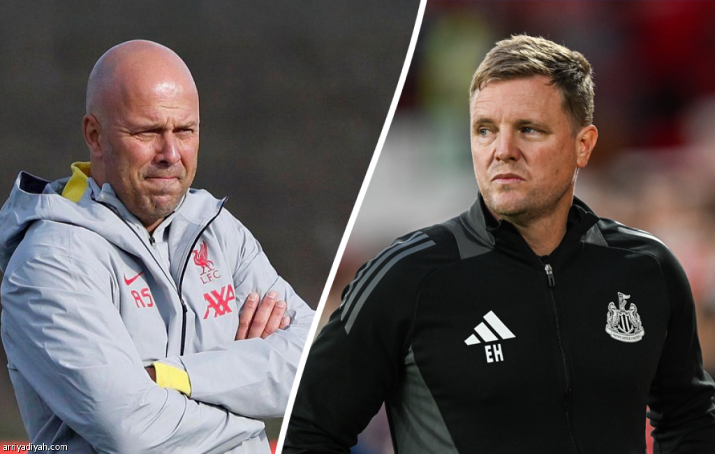 الإنجليزي إيدي هاو، مدرب نيوكاسل، والهولندي أرنه سلوت، نظيره في ليفربول (أرشيفية)