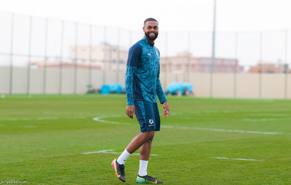 ثامر الخيبري، مهاجم الخليج الجديد، خلال حصة تدريبية سابقة مع نيوم، فريقه الأصلي (أرشيفية)