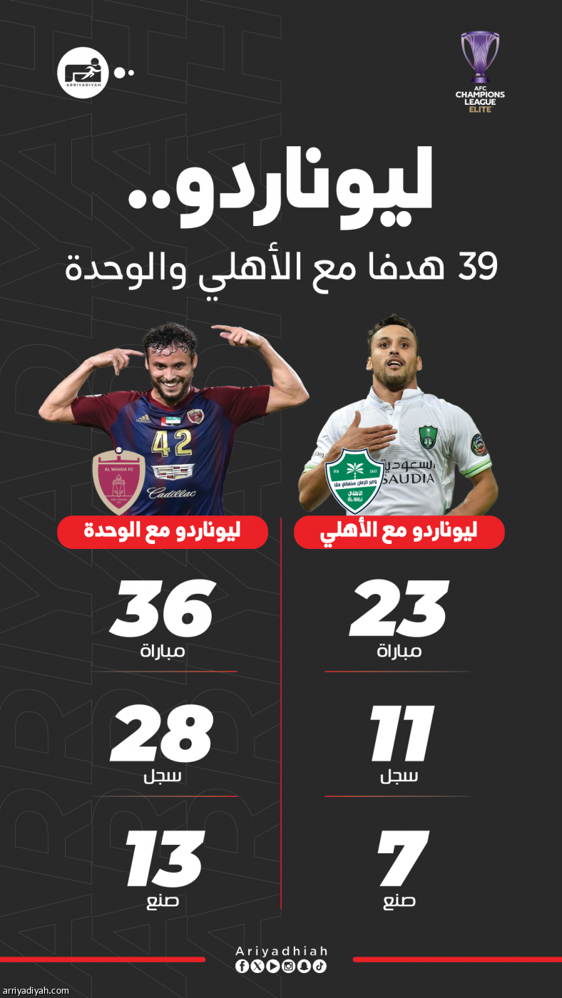 ليناردو .. 39 هدفا مع الأهلي والوحدة