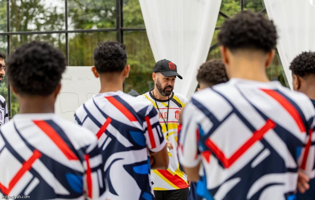 ماوريسيو دولاك، مدرب فريق الرياض الأول لكرة القدم، أثناء اجتماعه مع لاعبي فريق تحت 21 عامًا (أرشيفية)