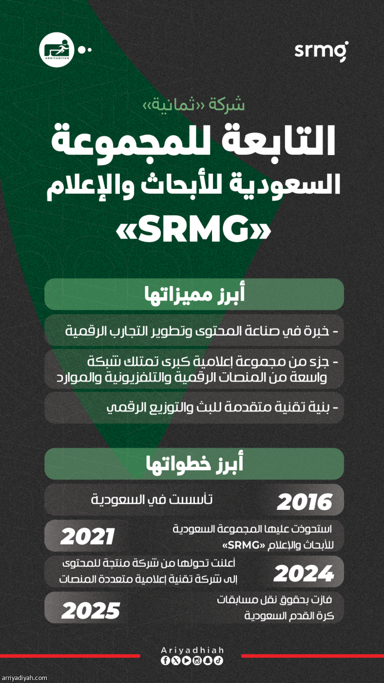 شركة «ثمانية» التابعة للمجموعة السعودية للأبحاث والإعلام «SRMG»
