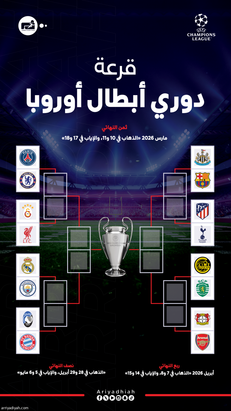 قرعة أبطال أوروبا.. السيتي يصطدم بالريال وباريس أمام تشيلسي