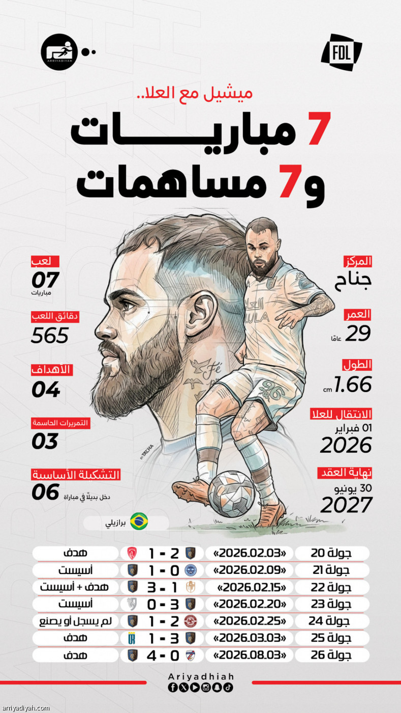 ميشيل مع العلا.. 7 مباريات.. و 7 مساهمات