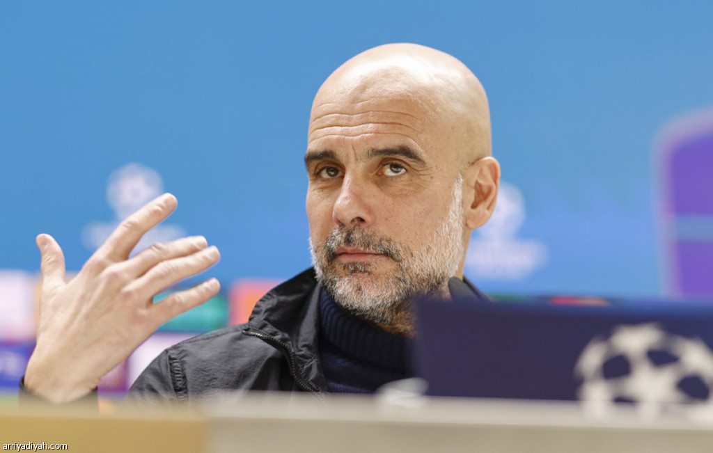 الإسباني بيب جوارديولا مدرب فريق مانشستر سيتي خلال المؤتمر الصحافي، الثلاثاء قبل مواجهة ريال مدريد، الأربعاء (الأوروبية)
