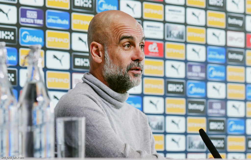 بيب جوارديولا مدرب مانشستر سيتي في المؤتمر الصحافي، الجمعة (المركز الإعلامي ـ السيتي)