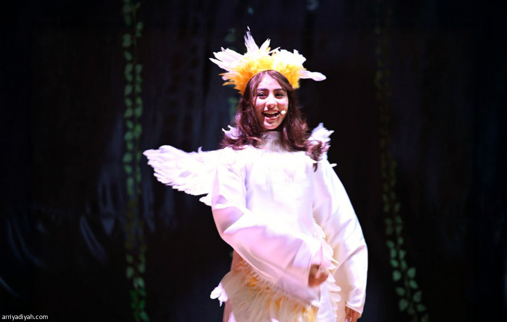 إحدى المشاركات أثناء عرضها بمسرحية «همس الغابة» في جازان (واس)