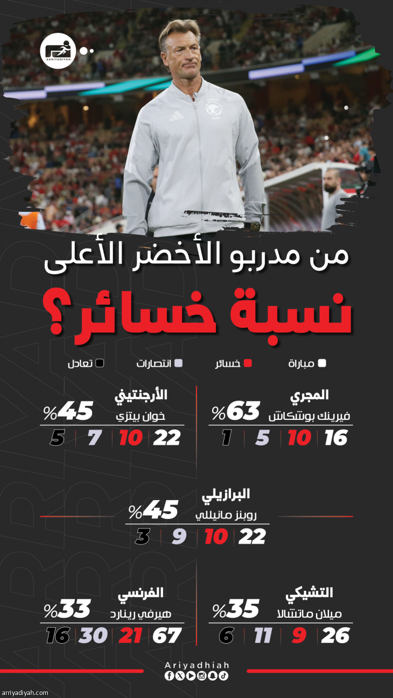 من مدربي الأخضر الأعلى نسبة خسائر؟