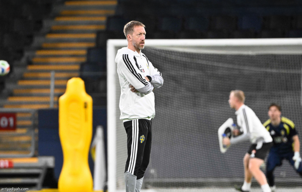 جراهام بوتر، مدرب المنتخب السويدي، يتابع الحصة التدريبية الإثنين، قبل مباراة بولندا في نهائي الملحق الأوروبي لكأس العالم 2026، الثلاثاء (الفرنسية)