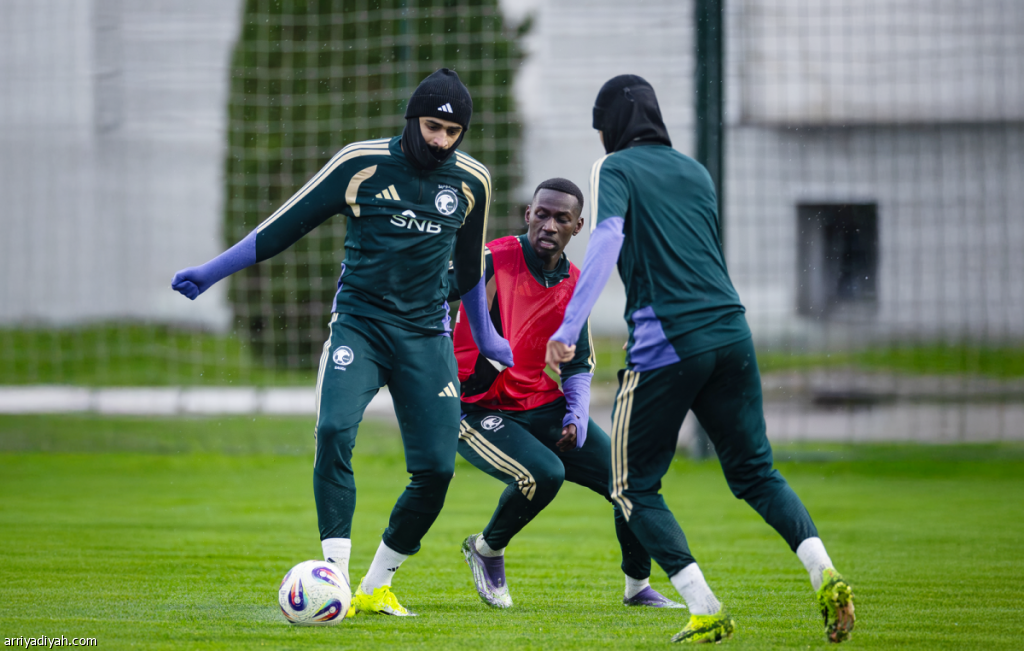عبد الإله العمري، مدافع المنتخب السعودي الأول لكرة القدم، خلال مشاركته في التدريبات، الإثنين، عشية المواجهة التجريبية مع صربيا على أرضها (المركز الإعلامي ـ المنتخب السعودي)