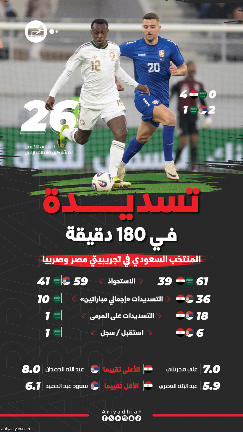 تسديدة في 180 دقيقة المنتخب السعودي في تجريبيتي مصر وصربيا