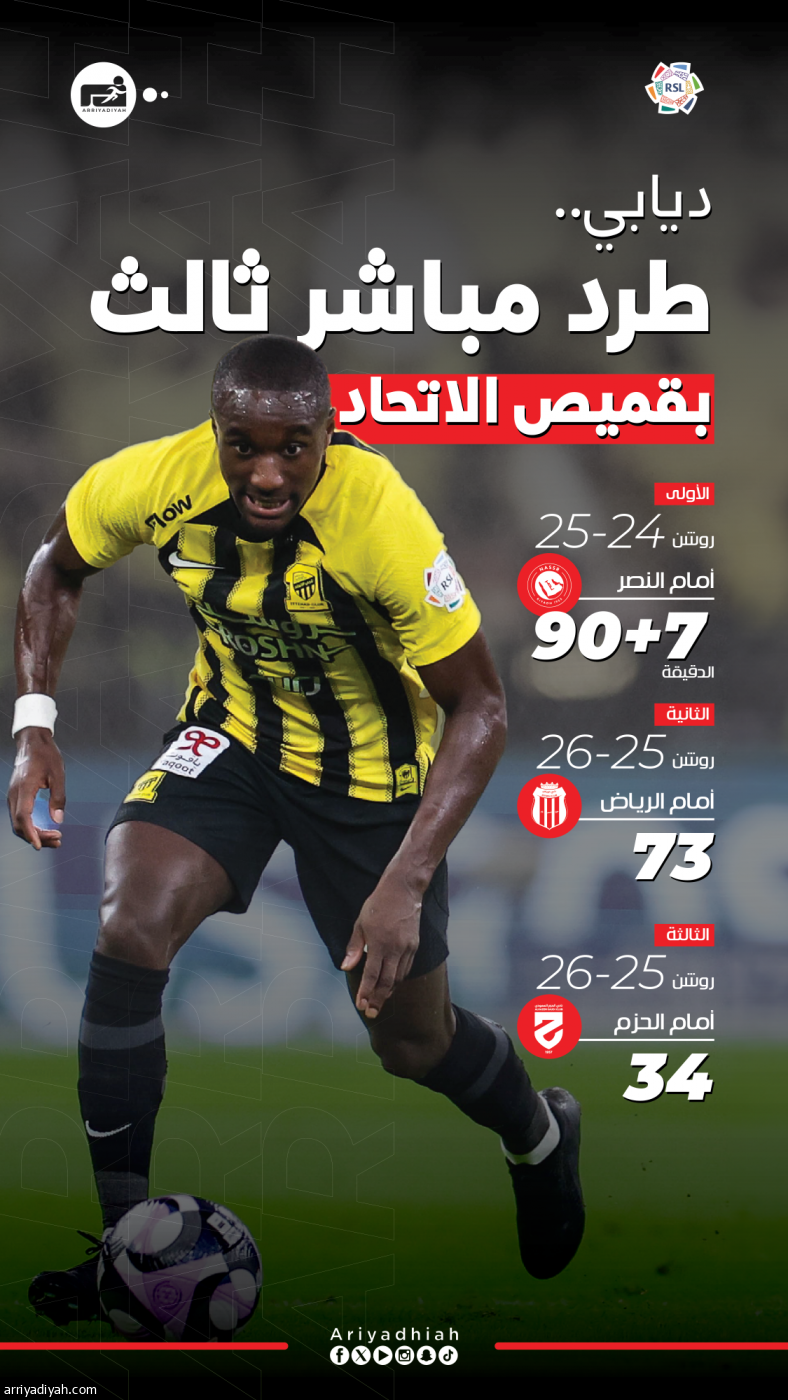 ديابي.. طرد مباشر ثالث بقميص الاتحاد