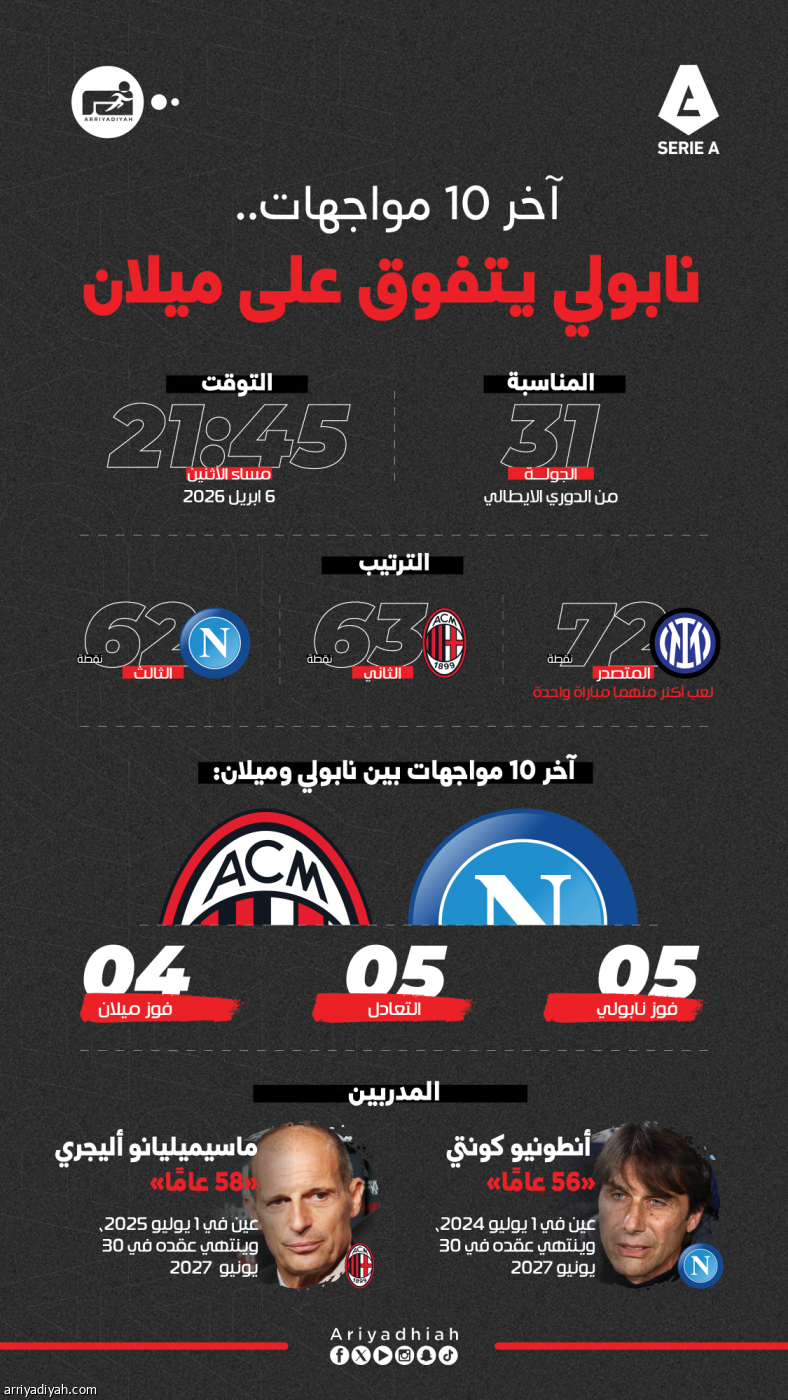 آخر 10 مواجهات .. نابولي يتفوق على ميلان