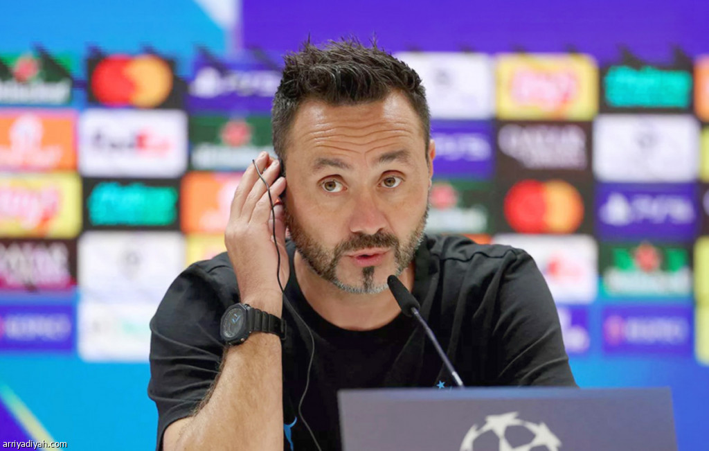 الإيطالي روبرتو دي زيربي في مؤتمر صحافي خلال قيادته مرسيليا في دوري أبطال أوروبا (أرشيفية)