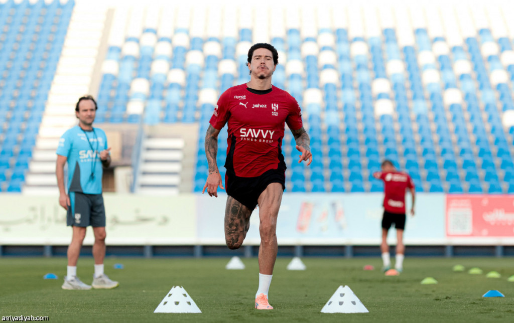 الأوروجوياني داروين نونيز، مهاجم الهلال، يؤدي التمارين في حصة تدريبية سابقة مع الفريق العاصمي (أرشيفية)