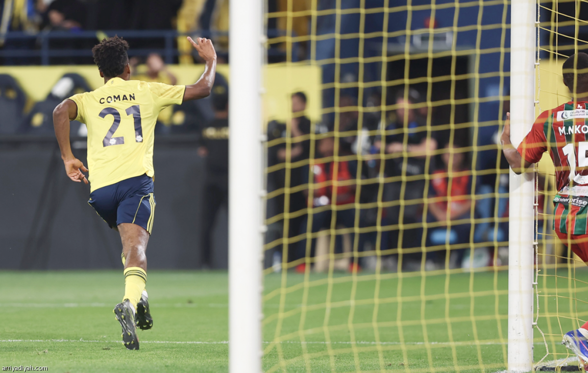 حقّق فريق النصر الأول لكرة القدم، أمام ضيفه الاتفاق الأربعاء، فوزَهُ الـ 15 على التوالي في دوري روشن السعودي، معززًا صدارته جدول الترتيب بوصوله إلى النقطة 76 قبل خمس جولاتٍ على نهاية المنافسة.. وحسم المتصدر المباراة، على ملعب «الأول بارك»، بهدفٍ دون رد أحرزه الجناح الفرنسي كينجسلي كومان في الدقيقة 31. تصوير: يزيد الضويحي و(المركز الإعلامي- النصر)