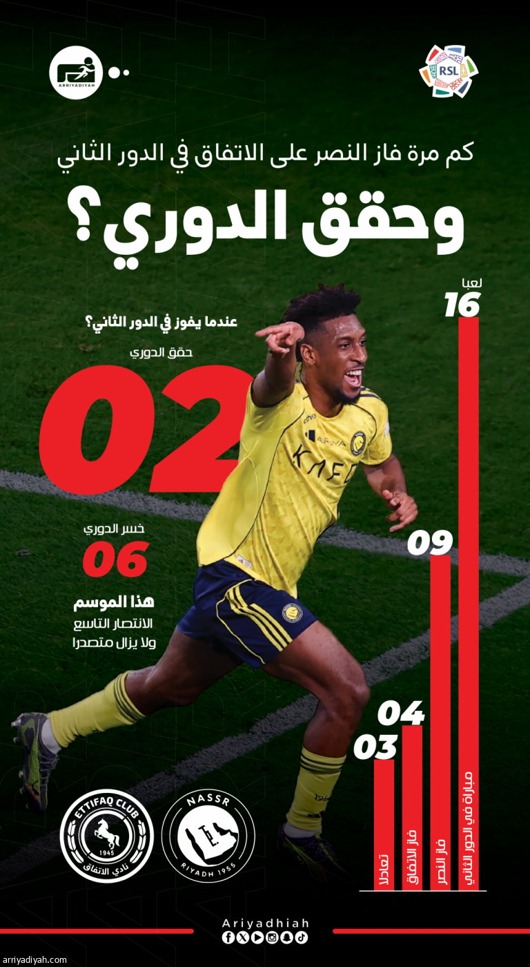 كم مرة فاز النصر على الاتفاق في الدور الثاني وحقق الدوري؟