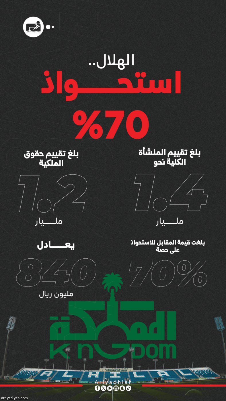 «المملكة القابضة » تستحوذ على الهلال بـ 840 مليونا