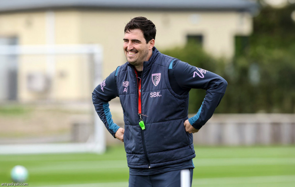 أندوني إيراولا مدرب بورنموث الإنجليزي يتابع الحصة التدريبية لفريقه الجمعة (المركز الإعلامي ـ بورنموث)