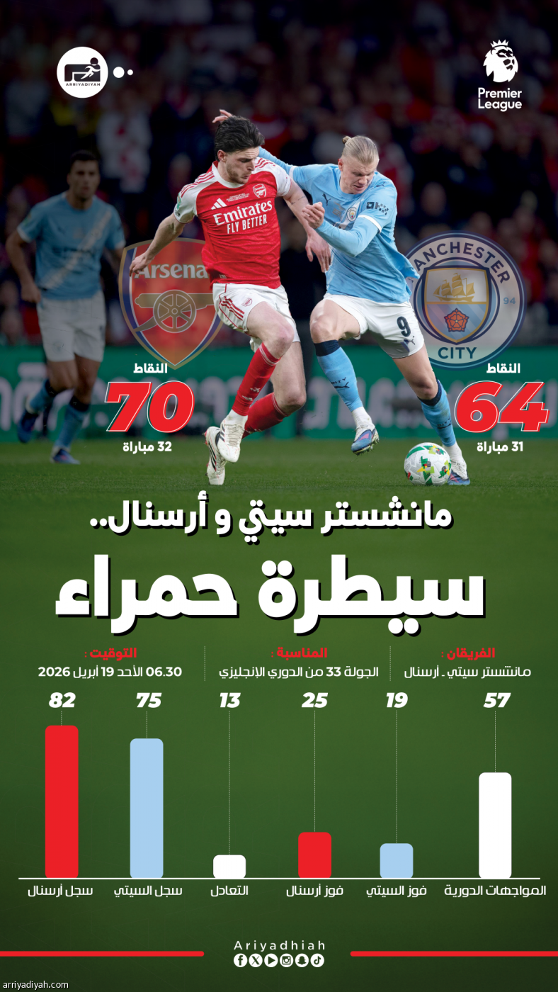 مانشستر سيتي و أرسنال.. سيطرة حمراء